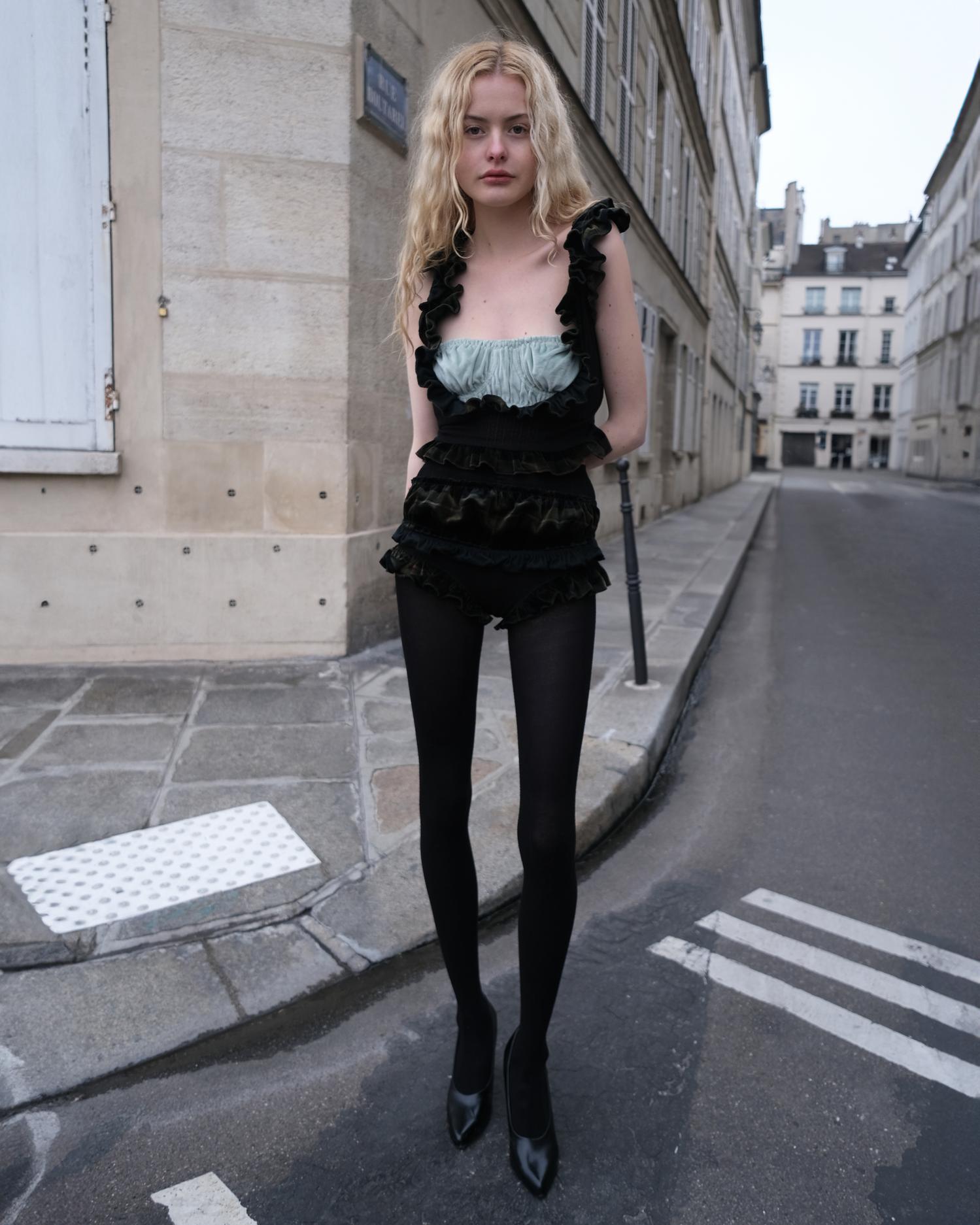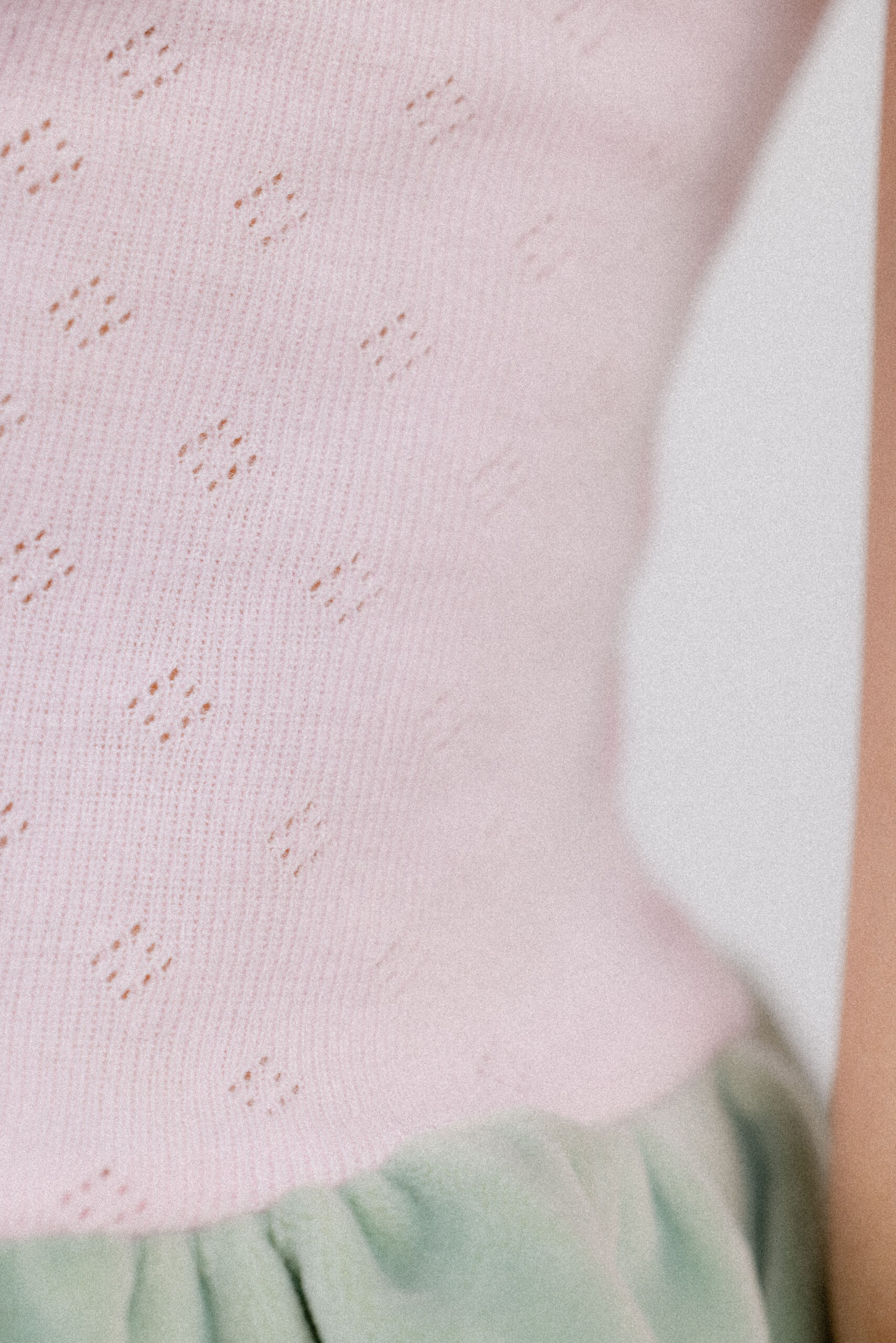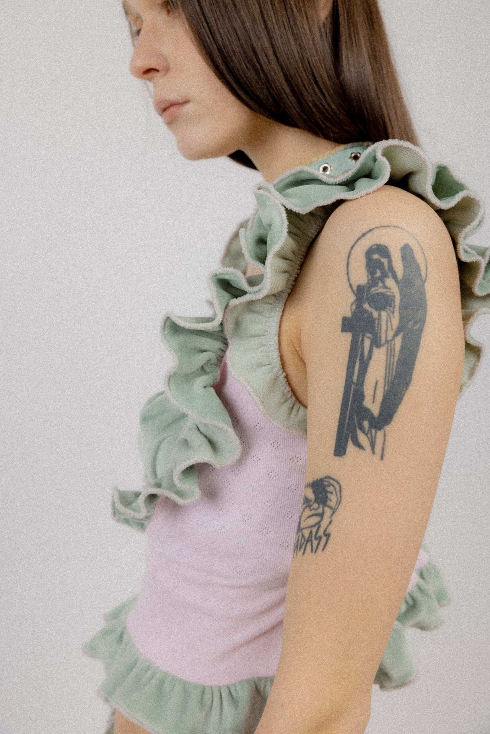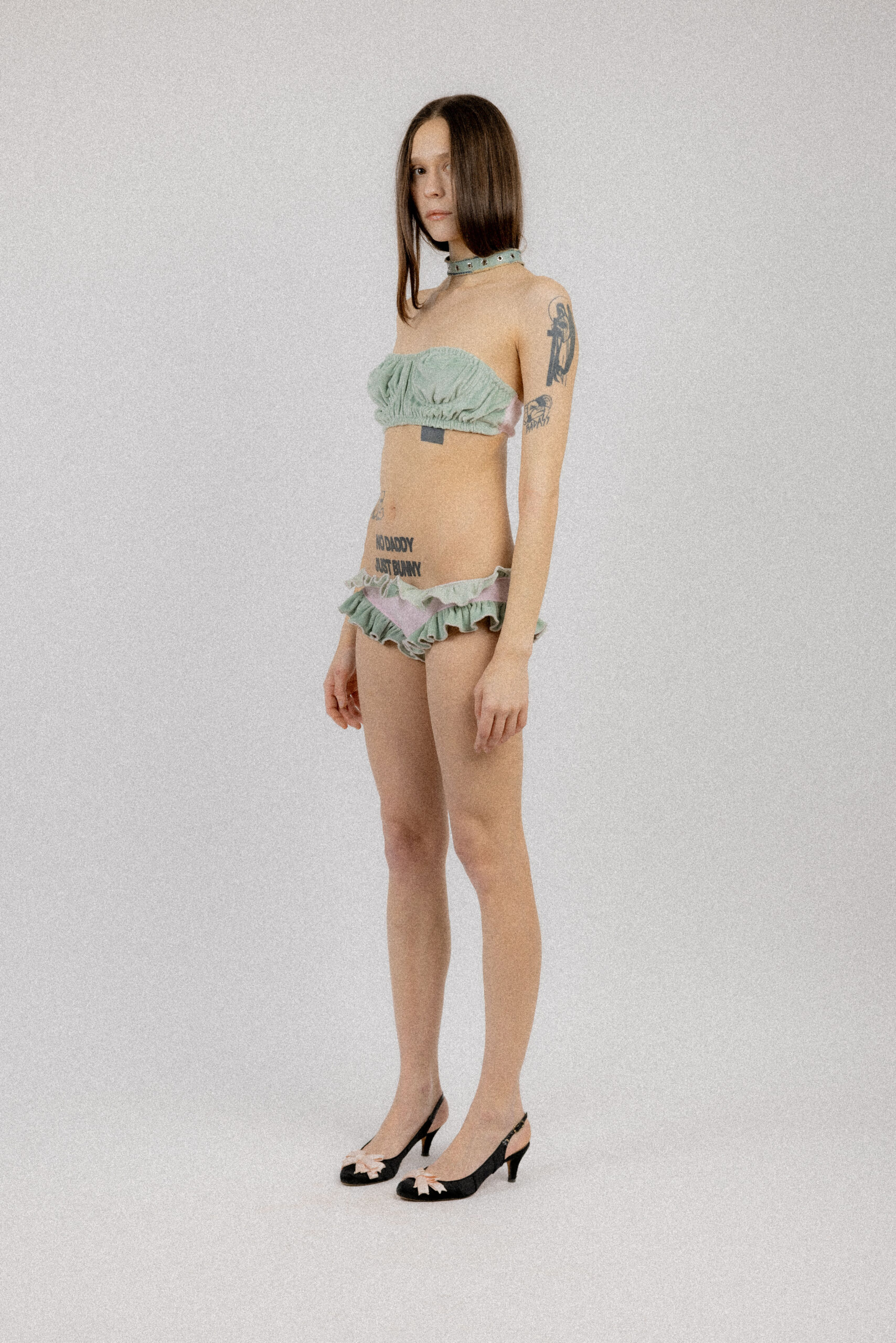 MERCI BIMBO set made in three pieces, in velvet and cotton, set of panties, bra and tank top with velvet ruffles.